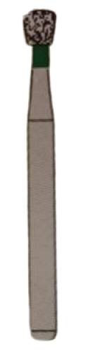 Применяется для грубой обработки зубных тканей, препарирования и формовки полостей. Используется при работе с эмалью и дентином, обладает высокой производительностью и точностью при ортопедических процедурах.