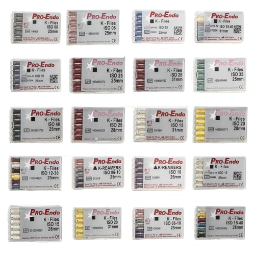 В качестве рабочей части К-файлов № 06 Pro-Endo применяется скрученный стальной стержень квадратного сечения, что снижает вероятность излома. Пластиковая рукоятка обеспечивает точность манипуляций, не проскальзывая в пальцах.